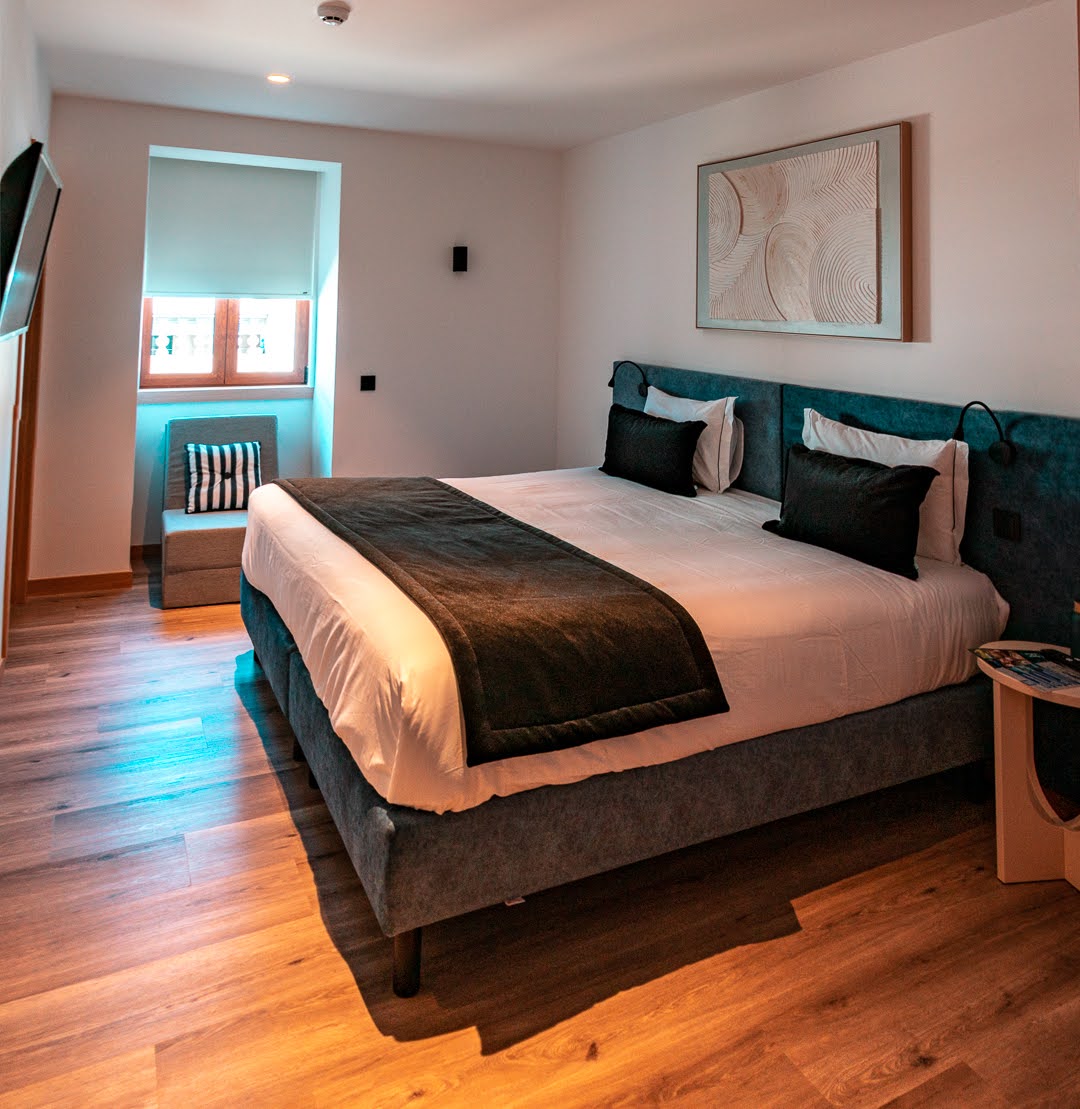A suite Barco Rabelo é uma homenagem aos tradicionais barcos rabelos, que ao longo dos séculos navegaram pelo Douro transportando vinho e mercadorias. Inspirada na essência da última aldeia piscatória do distrito de Bragança, esta suite combina charme e autenticidade, proporcionando uma estadia confortável e repleta de história.